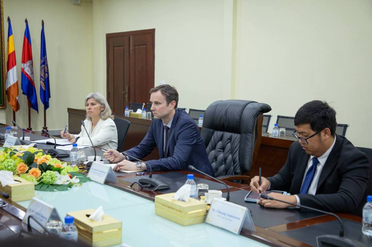 ឯកឧត្ដម ហេង សួរ រដ្ឋមន្ត្រីក្រសួងការងារ និងបណ្ដុះបណ្ដាលវិជ្ជាជីវៈ បានទទួលជួបសម្តែងការគួរសម និងពិភាក្សាការងារជាមួយលោក Jochen M. Schmittmann តំណាងប្រចាំតំបន់របស់មូលនិធិរូបិយវត្ថុអន្តរជាតិ (IMF) សម្រាប់កម្ពុជា ឡាវ និងវៀតណាម និងសហការី ដើម្បីធ្វើបច្ចុប្បន្នភាពការងារ ផ្លាស់ប្តូរយោបល់លើការស្រូបទាញកម្លាំងពលកម្ម ការអភិវឌ្ឍជំនាញ ជាពិសេស ការធ្វើសមាហរណកម្មពលករទេសន្តរប្រវេសន៍មកពីប្រទេសថៃ។