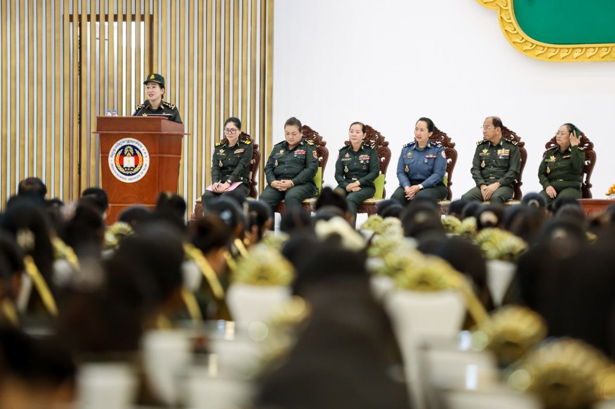 លោកជំទាវ ក៏បានគូសបញ្ជាក់អំពីតួនាទីសំខាន់របស់ស្ត្រី ក្នុងជួរកងយោធពលខេមរភូមិន្ទ ដែរបានចូលរួមយ៉ាងសកម្ម ក្នុងការអភិវឌ្ឍសង្គម ជាពិសេសក្នុងការការពារជាតិ បូរណភាពទឹកដី និងមាតុភូមិ ក្នុងន័យនេះ លោកជំទាវបានជំរុញឲ្យលោកគ្រូ អ្នកគ្រូ បុគ្គលិកទាំងអស់ បន្តពង្រឹងសាមគ្គីភាព ការងារ វិន័យ និងការប្តេជ្ញាចិត្តក្នុងការបំពេញភារកិច្ចឲ្យបានកាន់តែល្អប្រសើរថែមទៀត។