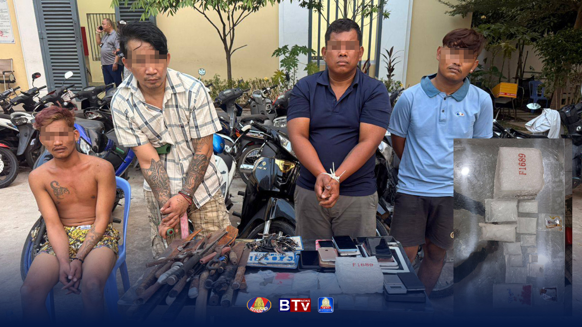 នគរបាលបង្ក្រាបមុខសញ្ញាក្រុមវាយប្លន់ម៉ូតូ០៤នាក់ ដកហូតគ្រឿងញៀន និងដាវជាច្រើន នៅខណ្ឌពោធិ៍សែនជ័យ