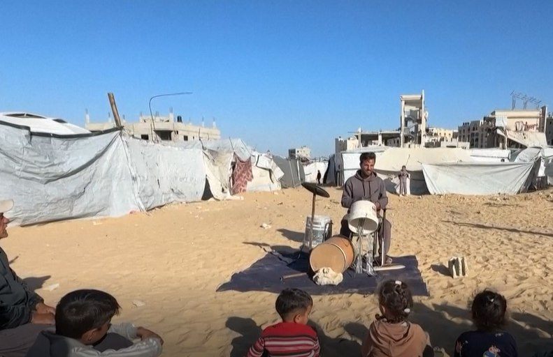 តន្ត្រីករហ្កាហ្សាផ្តល់បរិយាកាសសប្បាយរីករាយដល់ក្មេងៗជាមួយឧបករណ៍ភ្លេងកែឆ្នៃរបស់លោក