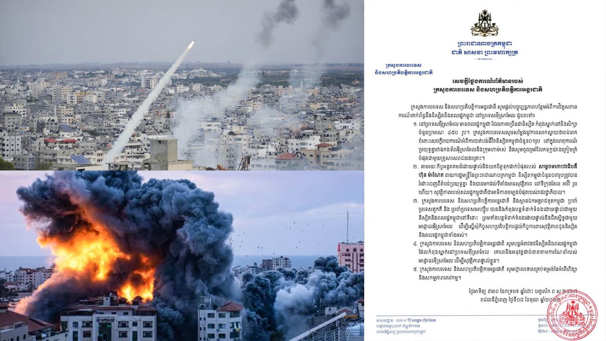 ក្រសួងការបរទេស និងសហប្រតិបត្តិការអន្តរជាតិ បានអំពាវនាវដល់បងប្អូនប្រជាពលរដ្ឋ និស្សិត​ខ្មែរ​ទាំងអស់ដែលកំពុងស្នាក់នៅ ប្រទេសអ៊ីស្រាអែល ត្រូវស្តាប់​តាម​ការ​ណែនាំ​ជា​ប្រចាំ​របស់​អាជ្ញាធរ​អ៊ីស្រាអែល ខណៈកំពុងមានការផ្ទុះអាវុធកើតឡើងនៅទីនោះ ដែល​បាន​បណ្តាល​ឲ្យ​មនុស្ស​ស្លាប់​រាប់រយនាក់​ដោយក្នុង​នោះ​ក៏​មាន​និស្សិត​ខ្មែរ​ម្នាក់​ដែល​កំពុង​សិក្សានៅ​ប្រទេស​អ៊ីស្រាល​បាន​បាត់បង់ជីវិតផងដែរ។តាមសេចក្តីថ្លែងការណ៍របស់ក្រសួងការបរទេស និងសហប្រតិបត្តិការអន្តរជាតិ ស្តីពីបច្ចុប្បន្នភាព បន្ថែម​អំពី​សភាពការណ៍ពាក់ព័ន្ធនឹងនិស្សិត និងពលរដ្ឋខ្មែរ នៅប្រទេសអ៊ីស្រាអែល នាថ្ងៃទី៨ ខែ​តុលា ឆ្នាំ ២០២៣នេះ បានលើកឡើងថា បច្ចុប្បន្នមានពលរដ្ឋខ្មែរ ដែលភាគច្រើនជានិស្សិត កំពុង​ស្នាក់​នៅ និងសិក្សានៅប្រទេសអ៊ីស្រាអែលចំនួន៤៥០នាក់ ហើយក្រសួង​មាន​ការ​សោក​ស្តាយ​ជាព​ន់ពេក និងចូលរួម រំលែកទុក្ខចំពោះការបាត់បង់ជីវិតពលរដ្ឋខ្មែរម្នាក់ ក្រោយ​មាន​ការ​បាញ់​ប្រហារ​គ្នា​រវាងអាជ្ញាធរអ៊ីស្រាអែល និងក្រុមហាម៉ាស់។ជា​មួយគ្នានោះក្រសួងការបរទេស ក៏បានអំពាវនាវដល់និស្សិត និងពលរដ្ឋខ្មែរដែលកំពុងស្នាក់នៅ ទី​នោះ​សូមអនុវត្តឲ្យបានដាច់ខាតតាមការណែនាំរបស់អាជ្ញាធរអ៊ីស្រាអែល ដើម្បី​សុវត្ថិភាព​ផ្ទាល់​ខ្លួន​ ហើយ​មួយ​វិញ​ទៀត​ក្រសួង​ការបរទេស​កម្ពុ​ជា​ក៏​បាន​ប្រកាស​ថ្កោល​ទោស​គ្រប់​ទម្រង់​នៃ​អំពើ​ហិង្សា និងសកម្មភាពភេរវកម្មផងដែរ៕ អត្ថបទ៖ បាន ចក់