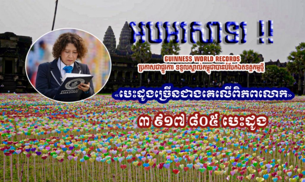 អបអរសាទរ! កម្ពុជាបានបំបែកឯតទគ្គកម្ម «បេះដូងច្រើនជាងគេនៅលើពិភពលោក» ចំនួន៣,៩១៧,៨០៥ បេះដូង