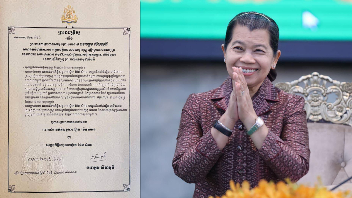 ព្រះមហាក្សត្រ ប្រោសព្រះរាជទានគោរមងារ «សម្ដេច» ដល់លោកជំទាវកិត្តិសង្គហបណ្ឌិត ម៉ែន សំអន