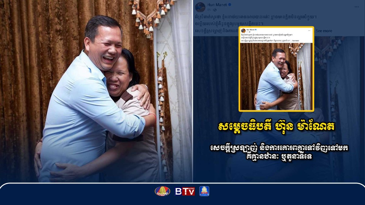សម្ដេចមហាបវរធិបតី ហ៊ុន ម៉ាណែត នាយករដ្ឋមន្ត្រីនៃព្រះរាជាណាចក្រកម្ពុជា តាម​រយៈ​បណ្ដាញ​​សង្គម​នៅព្រឹកថ្ងៃទី១៥ ខែមីនា ឆ្នាំ២០២៥នេះ បាន​បង្ហោះរូបភាព​មួយ​សន្លឹក​ជា​មួយ​អ៊ំស្រី​ជា​អ្នកអនាម័យម្នាក់ និងបញ្ជាក់ថា សេចក្តីស្រឡាញ់ និងការគោរពគ្នាទៅវិញទៅមក គឺគ្មានឋានៈឬតួនាទីទេ។ តាមរយៈបណ្ដាញ​​សង្គម​សម្ដេចធិបតី ហ៊ុន ម៉ាណែតបានសរសេរថា «អ៊ំស្រីគាត់សួរថា ខ្ញុំអនាម័យអាចអោបបានអត់? ខ្លាចមានក្លិនមិនល្អលើក្មួយ។ ចម្លើយ​របស់​ខ្ញុំ​គឺ​ដូច​ក្នុង​រូប​មួយ​សន្លឹក​នេះ​។»សម្ដេចថ្លែងថា «សេចក្តីស្រឡាញ់និងការគោរពគ្នាទៅវិញទៅមក គឺគ្មានឋានៈឬតួនាទីទេ។ រីករាយចុងសប្តាហ៍មិត្តទាំងអស់គ្នា។ Have a good weekend, everyone.»