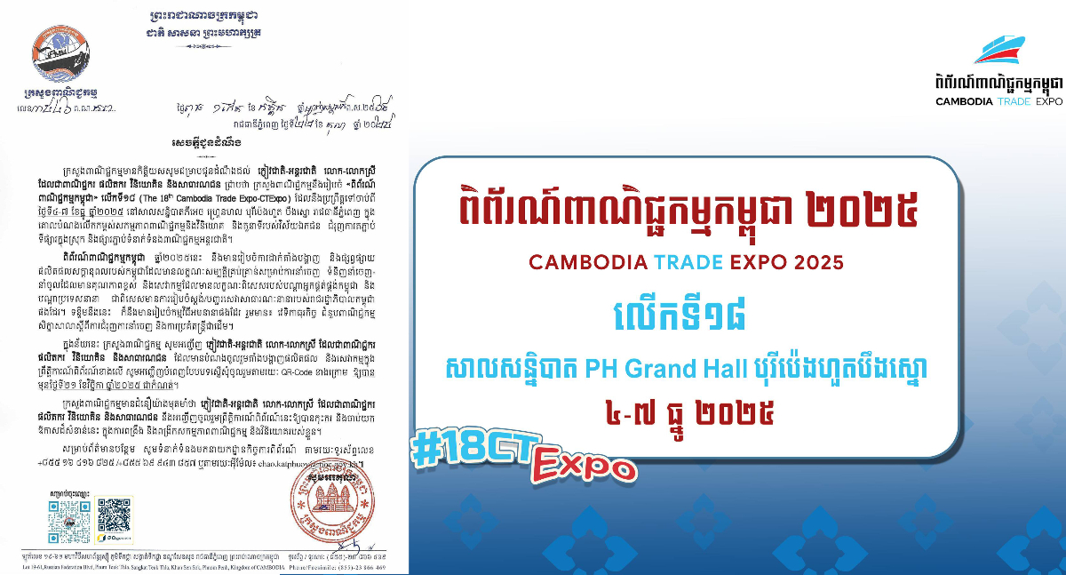 "ពិព័រណ៍ពាណិជ្ជកម្មកម្ពុជា" លើកទី១៨ នឹងរៀបចំ ៤ថ្ងៃ នាសប្ដាហ៍ក្រោយ នៅ បុរីប៉េងហួត បឹងស្នោ