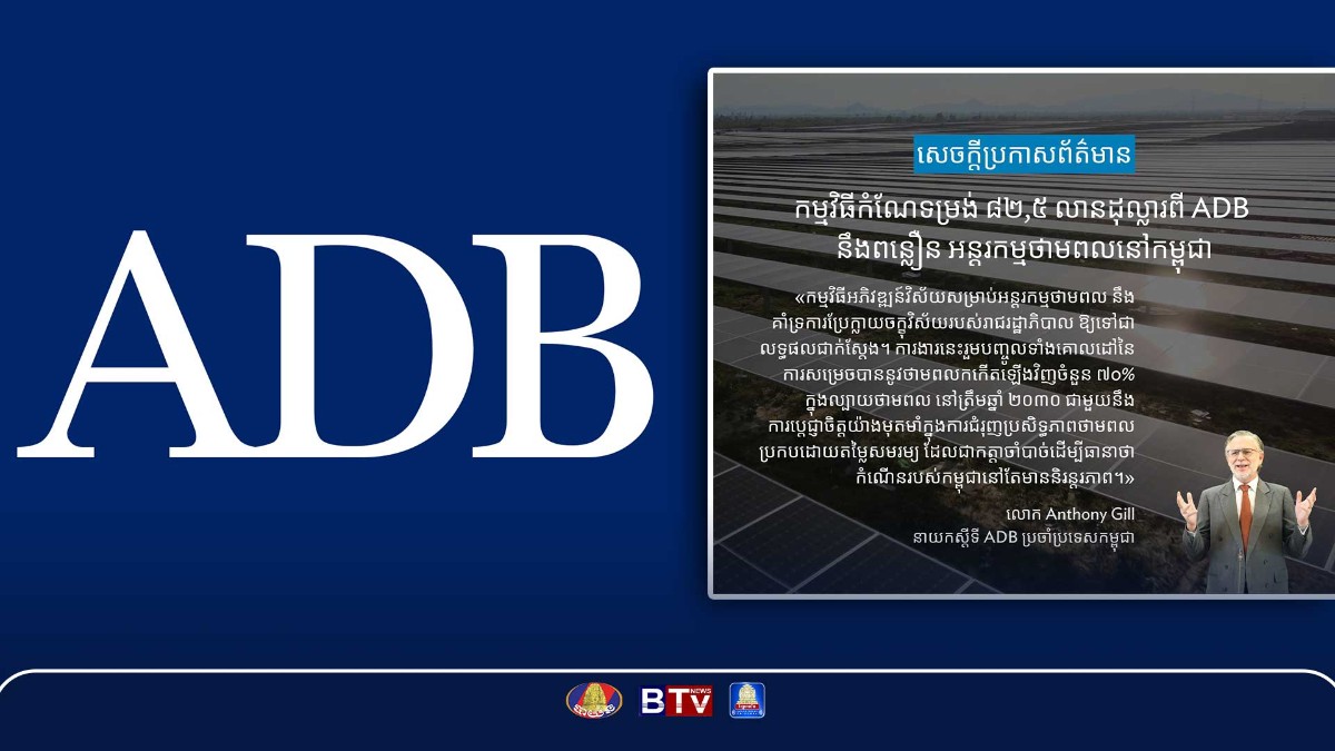 ADB បានអនុម័តដំណាក់កាលទីពីរ​នៃ​កម្មវិធី​អភិវឌ្ឍន៍​អន្តរកម្ម​ថាមពល​នៅ​កម្ពុ​ជា​ដោយ​មាន​ទឹក​ប្រាក់​ជាង ៨២លានដុល្លារ