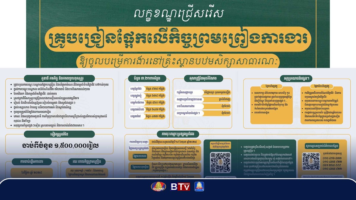 ឈ្វេងយល់អំពីលក្ខខណ្ឌ!! សម្រាប់ការចូលរួមប្រឡងប្រជែង​គ្រូបឋមសិក្សា​ផ្អែកលើ​កិច្ច​ព្រមព្រៀង​ការងារ