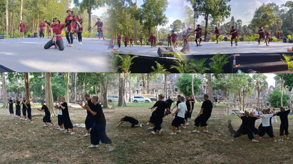 ក្រុមសង្ឃសៅលីង និងក្រុមក្បាច់គុនបុរាណខ្មែរកំពុងហាត់សម ដើម្បីត្រៀមចូលរួមសម្តែងក្នុង «មហោស្រពក្បាច់គុនចម្រុះ កម្ពុជា-ចិន» នៅថ្ងៃស្អែកនេះលើទឹកដីអង្គរ
