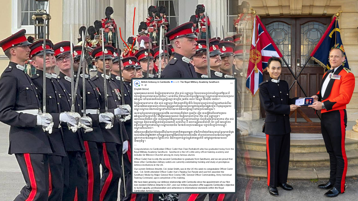 ហ៊ុន ចាន់ បញ្ញាបុត្រ ចៅសម្តេចតេជោ ហ៊ុន សែន និស្សិតខ្មែរទី២ បញ្ចប់ការសិក្សាពីរាជបណ្ឌិតសភាយោធាសាន់ហឺស ក្នុងប្រទេសអង់គ្លេស