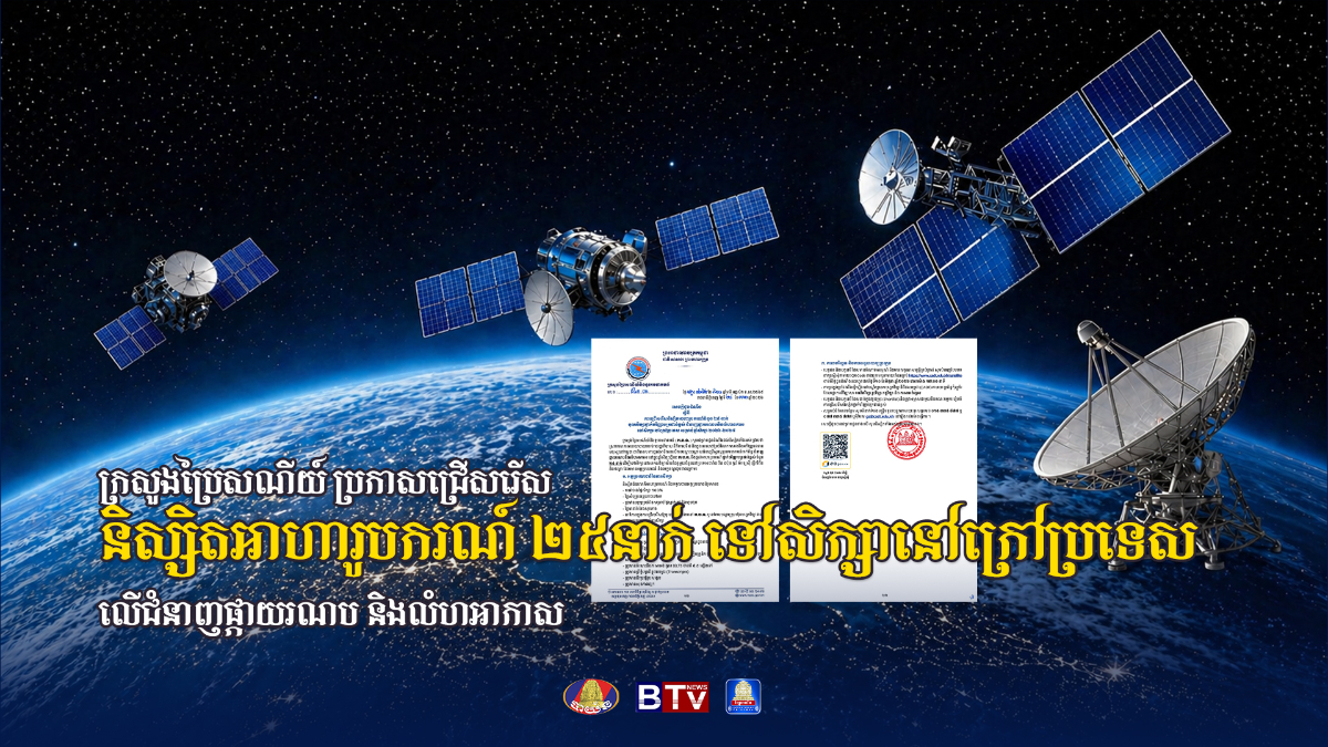 ក្រសួងប្រៃសណីយ៍ ប្រកាសជ្រើសរើស​និស្សិតអាហារូបករណ៍ ២៥នាក់ ទៅសិក្សា​នៅ​ក្រៅ​ប្រទេស​ លើ​ជំនាញផ្កាយរណប និងលំហអាកាស​