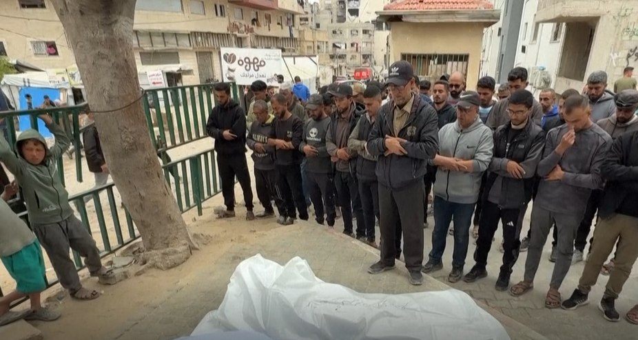 ជនប៉ាឡេស្ទីននៅទីក្រុងហ្កាហ្សា កាន់ទុក្ខមនុស្សជាទីស្រលាញ់ដែលត្រូវបានសម្លាប់ក្នុងការបាញ់ប្រហាររបស់អ៊ីស្រាអែល