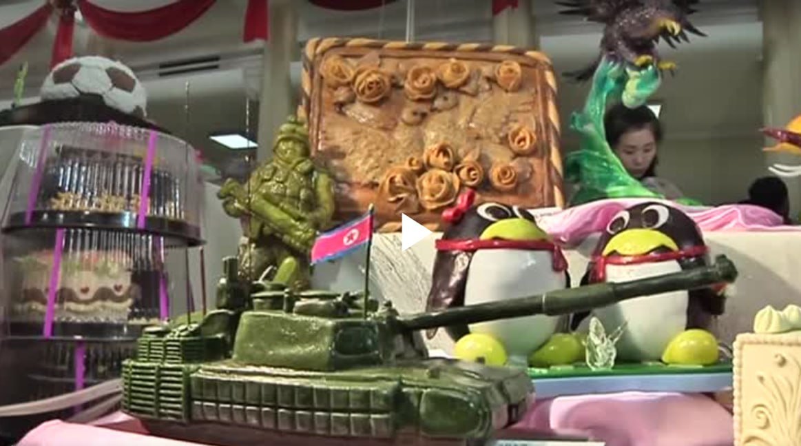 កូរ៉េខាងជើងដាក់តាំងបង្ហាញស្ករគ្រាប់រាងដូចមីស៊ីល និងរថក្រោះ នៅក្នុងពិធីតាំងពិព័រណ៍