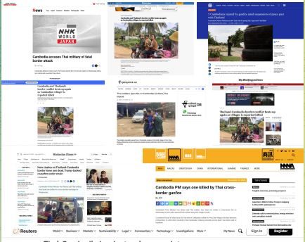 ប្រព័ន្ធផ្សព្វផ្សាយពិភពលោករាយការណ៍ពីភាពតានតឹងរវាងថៃ-កម្ពុជា ក្រោយថៃបាញ់សម្លាប់ពលរដ្ឋកម្ពុជាម្នាក់