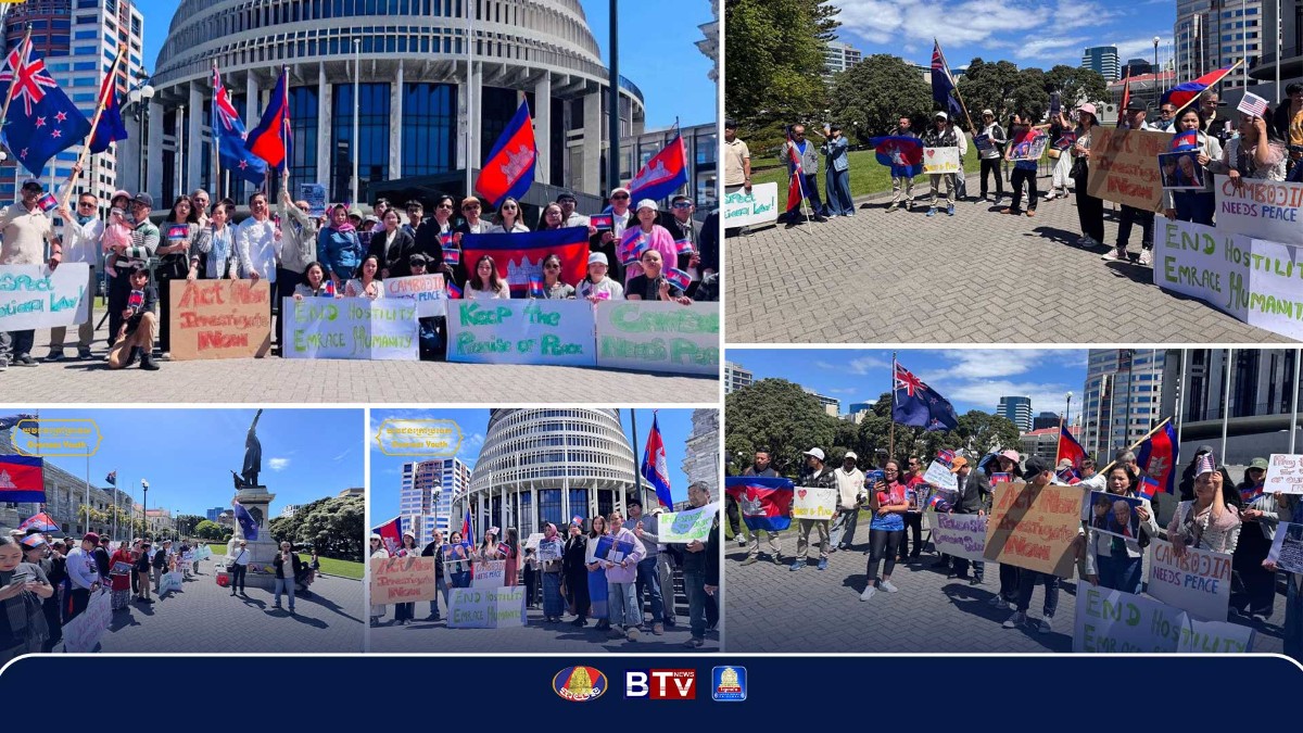 ពលរដ្ឋខ្មែររស់នៅនូវ៉ែលហ្សេឡង់ជាង ២០០នាក់ជួបជុំគ្នានៅ​មុខរដ្ឋសភា​រដ្ឋធានី​វ៉ែល្លីងតុន​ប្រកាស​ថ្កោល​ទោសយោធាថៃបាញ់ប្រហារពលរដ្ឋស៊ីវិលស្លូតត្រង់កម្ពុជា